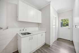 Step outside to a large courtyard featuring a pergola and landscaped garden - perfect for outdoor dining and low-maintenance living. The laundry includes extra built-in cabinetry for added convenience.